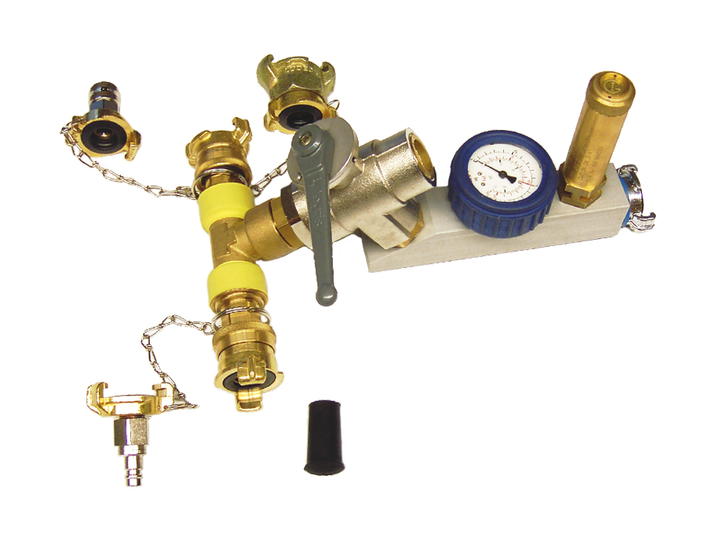 Используется для подачи воздуха а также предохранения устройств от переизбытка давления Особенности: ее диаметр, как и диаметр шлангов позволяет изменять скорость закачки воздухом в зависимости от сложности установки. Более дорогие арматуры применяются для закачки воздуха с разных источников. Переходники позволяют использовать различные источники воздуха. В случае сильного течения может использоваться арматура на 1 дюйм, а для больших ПЗУ - даже две таких арматуры и два источника воздуха, Более того и стравливание воздуха в таком случае лучше проводить по двум каналам с использованием двух эжекторных насосов.